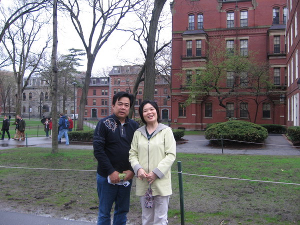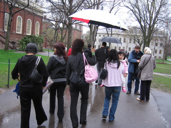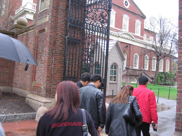 一班人先到美国的最高学府哈佛报到, 你看! 我们不是已经进哈佛了吗! 哈! 哈! 你看她们走得多匆忙
