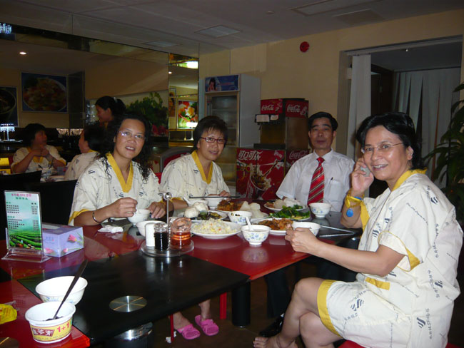 游客在进入这餐厅前,要换上这里的休闲服。这一改变可有趣了,其一是免费饭票,穿这服装的人可随意选食任何中、西餐点;