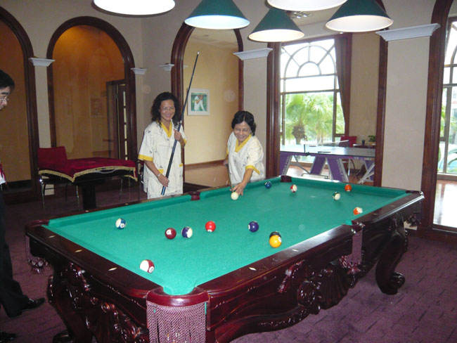 一个有50座位的小电影院,吃喝玩累之余看两场电影吧;或者到休息大厅去,每一张软沙发前配套一台小电视,手里拿着电视遥控器,躺着选择精彩的节目;又或者到卡拉OK房去练练嗓子;还有免费上网的吧房,但好可惜被小游客全霸占上网打游戏了;东、南、西、北、中、冬、夏、秋、冬、梅、兰、谷、竹。。。十几个麻将房全部有高手在切磋技艺;楼上按摩房有25间,其中有香薰推油、中式按摩、泰式按摩、中医理疗、足浴按摩。。。(这些项目是另收费的)