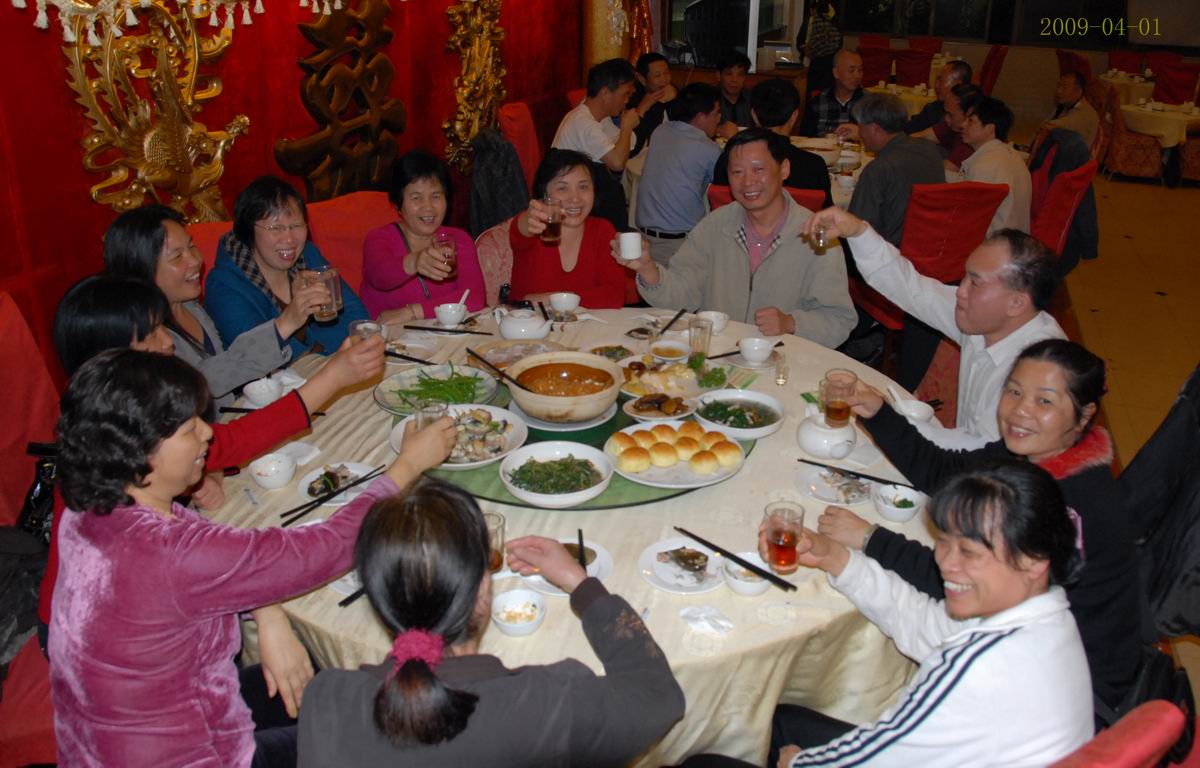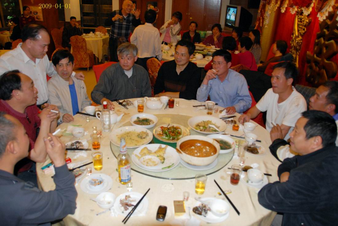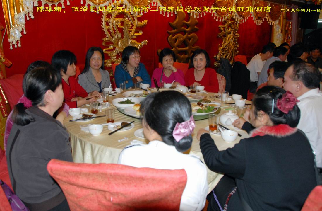 2009年4月1日晚陈球珊、伍泽民同学于台城(友谊)旺角酒店盛宴74届高二四班同学场面。