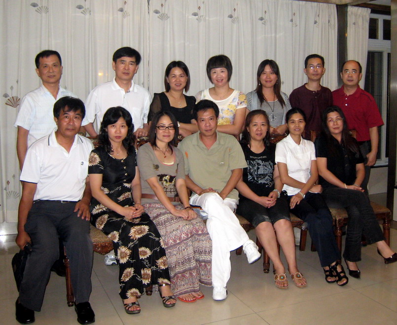 哇哈哈: QQ群的一班老朋死党在今晚的聚会后与“马仔”(坐着穿白裤者)合影