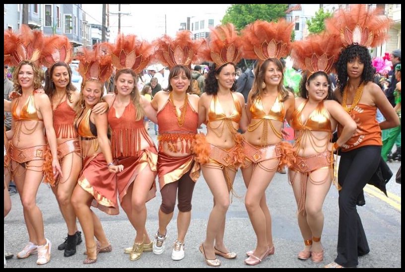 穿着各色的服裝,聚集街頭狂歌熱舞,欣賞肚皮舞娘曼妙舞姿,各种風