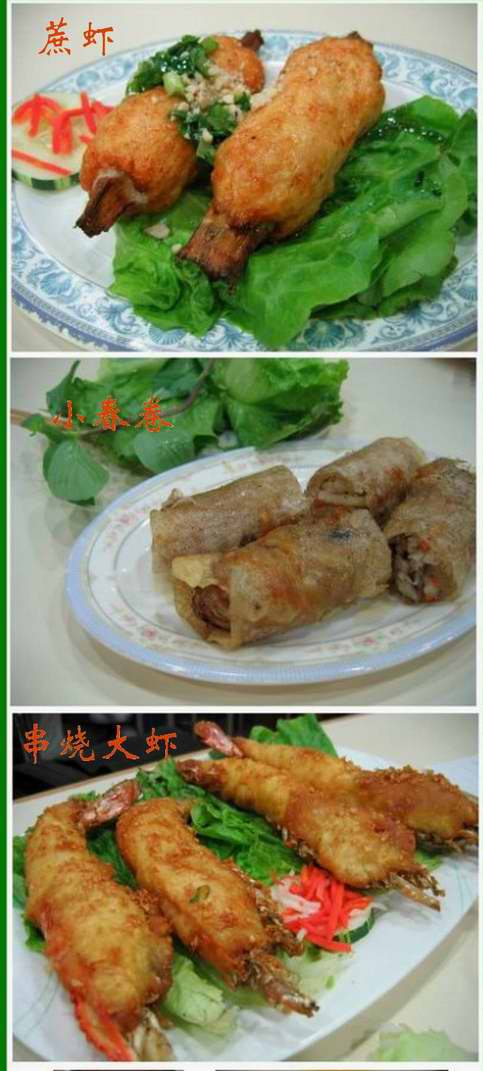 材料:蟹肉.肉碎.粉絲.木耳絲.马碲切碎.调味.用腐皮卷起.油炸金黃色.