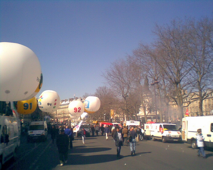 上面两张图正是五月一日在法国各地举行大规模的示威大游行......