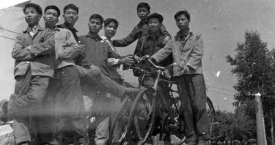 老同学:当年坐车头的小伙子是否下面相片中的红衣人啊?