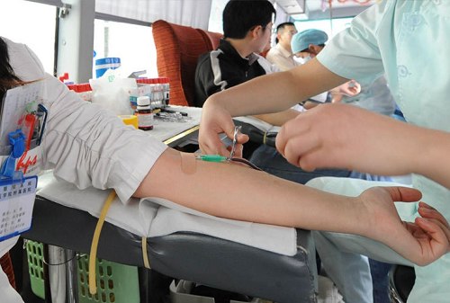 5月14日,南京鼓楼医院的医生们伸出手臂,踊跃献血,救助地震灾区伤员。