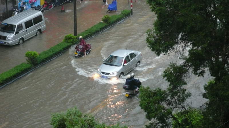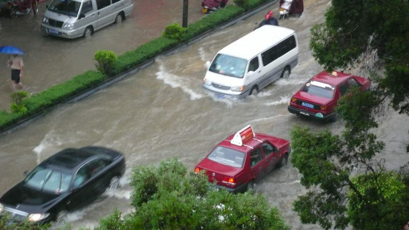 今晨台山地区连续下了两个多小时的大暴雨,一早上班,家门口楼梯的水哇啦啦往下流,家里差点成了泽国(雨水从九楼天棚流下来),路上见到几条街道被浸,开车绕了几条道才回到公司,公司里不时传来某某因路上水浸没法上班的电话报告,如果大雨仍在下的话,难保台城又要水浸金山寺了。