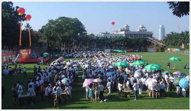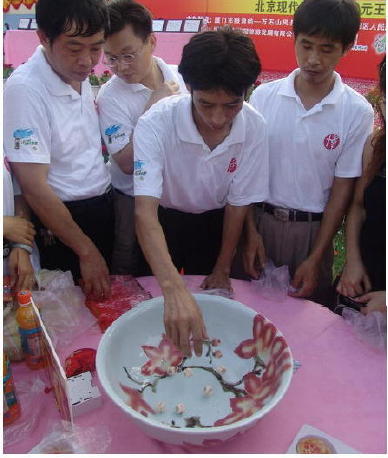 对,就是中秋节期间!中秋节,我们中国传统的节日,从今年起还纳入了法定节日。每个城市都会欢度的节日,似乎没什么希奇呀?但对于厦门,它是个狂欢节,是一年中最热闹的时候!全民总动员,男女老少共同参与一种叫做“博饼”的活动,大家齐聚一堂,欢声笑语,热闹非凡。这是一种独特的民间习俗,是对历史文化的一种传承。只要你是有单位的,单位都会组织,即使是幼儿园的小朋友,老师们也会组织。倘若没有单位也无妨,所在的住宅社区会牵头安排,或者到商场购物,买够一定金额都可以参加。从中秋节前一个月到中秋之夜,如果你在厦门,你一定不时听到大街小巷传来“叮叮当当”清脆的响声,什么声音?来到商场或餐馆或...总会看到桌上摆放着一个大瓷碗,围着一群人,有人往碗里扔进骰子(色子),呵,原来“叮叮当当”就是从那里发出来的呀,但是大家在干啥呢?一抬头,大红横幅高挂:祝中秋“博饼”快乐!中状元!!~o~仍然丈二和尚摸不着头脑?What's it?What's the matter?