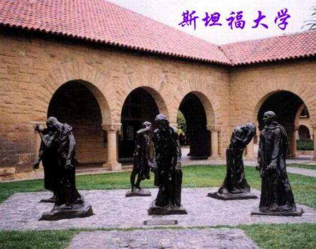 浪漫之旅___蜻蜒点水走过旧金山 (三) 在机场里,我们找到高举寻“陆茂”纸牌的旧金山导游,他自我介绍姓彭,是华人,许多年前来到美国留学,毕业后有同学回大陆发展,他却愿意留在美国,曾参与电影制片工作,现在改行当导游,基本已适应了美国的生活方式. 大型豪华旅游巴士把我们送去第一站景点参观。 彭导游年约三十多岁,阅历似乎相当丰富,沿途指给我们看那里属于硅谷地带,讲述硅谷的来源和发展,硅谷早在六十年代开始发展,到了九十年代未最火红,泡沫经济曾令股价急剧暴升,但随着经济衰退股价又步步走低.硅谷的范围有50公里长20公里宽,没有明显的出口和入口,里面约有三千五百家公司,主要是信息产业,IT 行业,新材料,生物工程,这里每天都有公司倒闭或新公司成立. 彭导游一路向我们介绍旧金山的历史,政治,经济及文化.旧金山旧称三藩市,早在十七世纪,教会的修士为了传道而在此设立教堂,并以教派为地名,故称为SAN FRANCISCO.到了十八世纪,旧金山发现有金矿,掀开淘金时代的序曲,各地大量移民涌入,短时间内人口暴增,旧金山此后数十年源源产出黄金,它即挟此雄厚财力为后盾,在迈入二十世纪前,跃升为美国西岸的工业大城市。旧金山的气候,常被喻为“天然的空调”,气温终年介于10度至20度之间,不冷不热,凉爽宜人。雨季在冬天,春秋两季几乎不下雨。旧金山是美国西部时间,与北京时间相差负十五小时. 旧金山是同性恋的发源地,旧金山以前的一位市长马氏可尼,就是第一位公开认同同性恋的市长。同性恋的标志是六彩旗,在这城市你只要看到在一栋二层楼的别墅上挂着一面六彩旗,也许这是一对同性恋的住所,挂着六彩旗的地方不一定是同性恋的地盘但一定是支持同性恋者,同性恋者在精神上已超越传统的伦理观念。绿帽说:“走在旧金山的大街上,随时可见一对对的同性恋者在街头勾肩搭臂地行走.”于是我睁圆眼睛寻找,可惜始终未能寻见。 我们首先到斯坦福大学参观,它是美国西部最著名的大学.曾经因为克林顿的女儿在这所大学上学而一时特别引人注目,美国的大学与我们国内的大学不同,这里没有院墙,没有大门,更没有穿着假警服的门卫,当然更无填会客单,签名这些繁锁的手续.车驶入一片幽静的树林,穿过广阔的绿茵草坪,车子停在一排泥黄色的平房跟前,我们被告知这就是斯坦福大学.这所大学占地面积是五万三千亩,据说是清华大学的十三倍。 我随着人群走进学校参观,校园的正面很宁静,难见行人,里面的几排平房的走廊外墙几乎都是拱圆型,令我想起电影里的延安,步步深入往里面走,见到一座三角形的纪念教堂,据说建于1892年,墙外是巨型的彩色壁画,导游只按排我们三十分钟时间自由活动,我来不及仔细欣赏.趁其他团友正在拍照,我自己快步走进校园的中心处,在这里我终于看到热闹的学生人潮,校园里,学生们骑自行车的情形随处可见,我溜入教室,直接去感受学生的上课情况。。。。。据说在这里学习的学生每年要缴费三万五千美元呢,美国大学的体系与中国不同,他们采用学分制,可随意停学外出工作,许多年后再回大学修读,只要学分学满就能毕业。斯坦福大学的学生宿舍都是二人一间房,但学生只能在学校住宿一年,一年后自找地方居住。外国人可以前往美国的大学留学,但每一个学分比本国学生贵。如果你想送子女读斯坦福大学,每年约需人民币40万元,贵不贵?呵~~因人而异。由于我违反纪律,独自离团,想到此一游拍照留念,唯有请学生们帮忙,这里的学生们都非常友善,尽管我与他们如鸡同鸭讲,但他们都能理解我的意图而满足我的愿望,不过,因为担误了全团的时间,被绿帽第一次警告。(斯坦福大学图片)  |