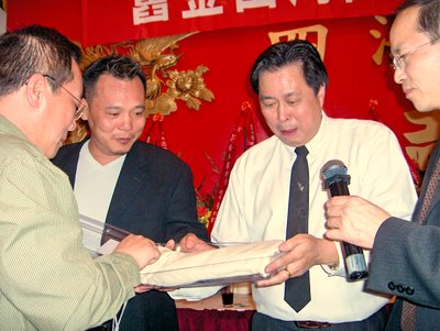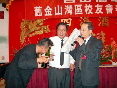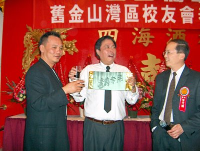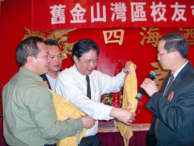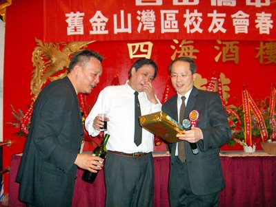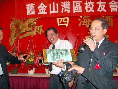 今晚,侨中校友会旧金山湾区春宴喜庆一堂.宴会中,老鸡同志收到了一份神秘礼物~~