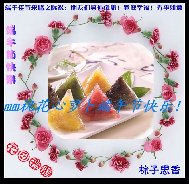 萝卜阿姨,我们没有棕子吃,妈妈不买给我们,不高兴.送朵红花您过节日.