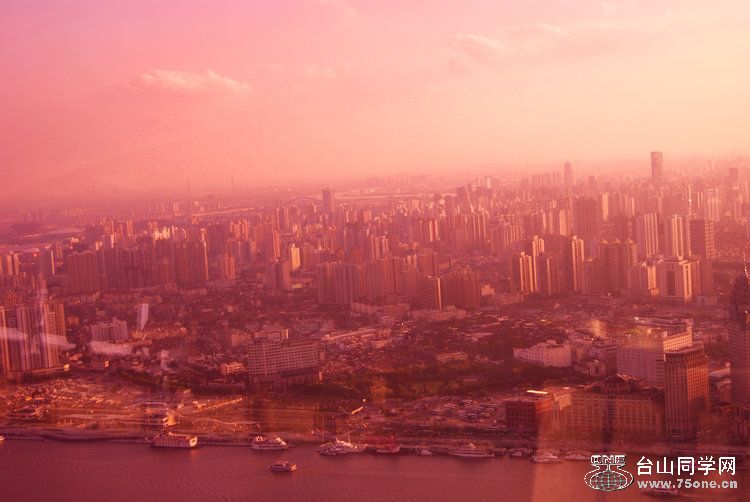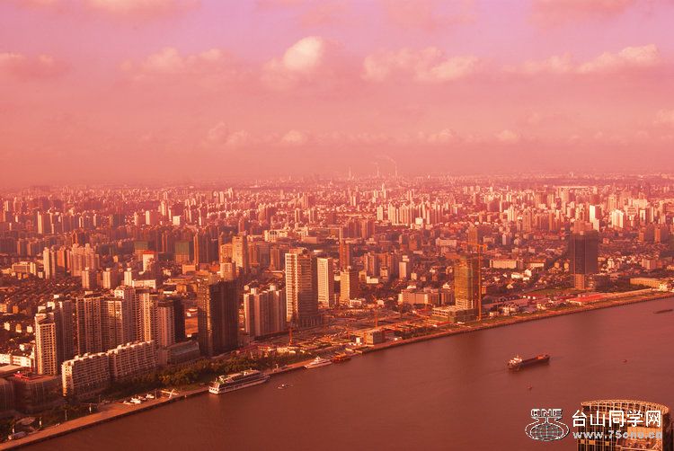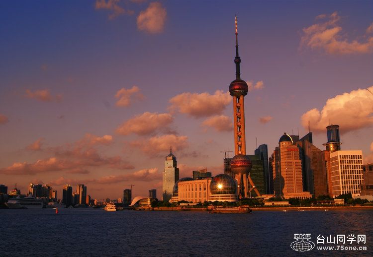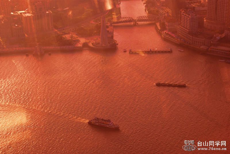 随着浦江滔滔江水,相映落日的余晖,