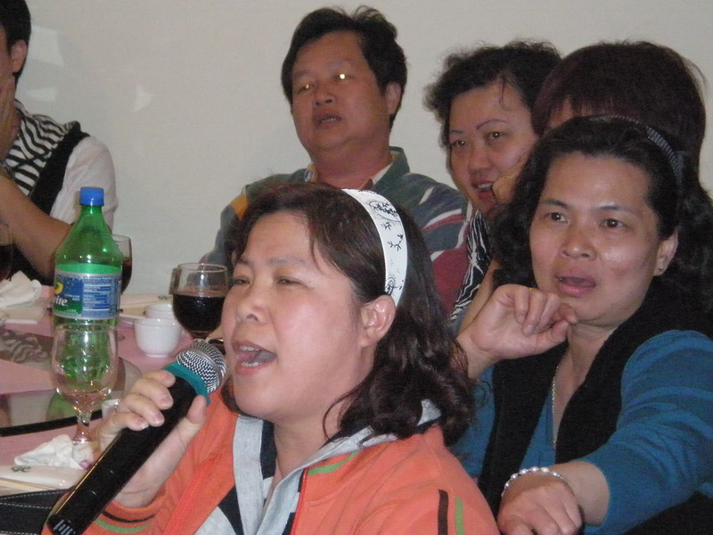 你看我们的伍大小姐, 歌也唱得真投入! 远道而来的她得到了我们美东的一班当年红卫宣传队好友的欢迎, 一起来到了百鲜酒家, 吃饭卡拉OK直落! 爽!