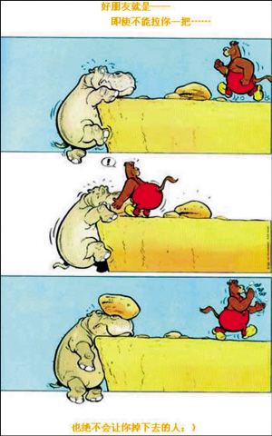 萝卜手头还有一个漫画版的朋友(好朋友就是——即使不能拉你一把……也绝不会让你掉下去的人),贴来以博朋友们会心一笑: