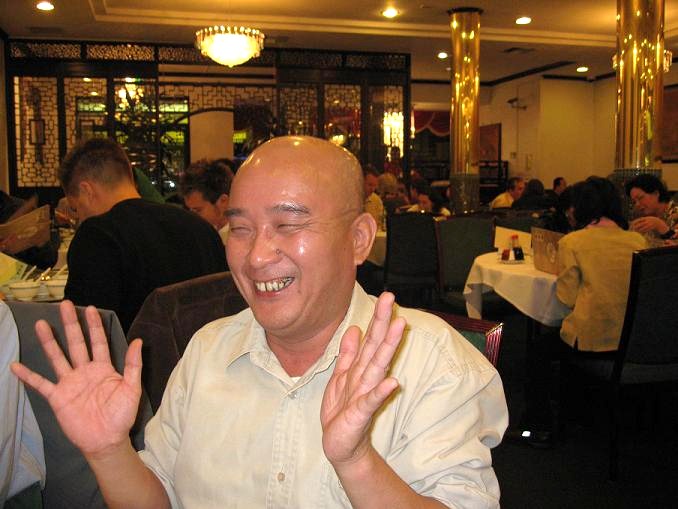 DHK: 昨天雞哥哥拉四眼光頭哥哥出來劈酒,講數.四眼光頭佬成個係酒鬼咁個樣,一听見有酒飲眼線一條兼拍細手掌.雞大哥的見面禮搓圓又壓扁.意即係:祝四眼光頭佬好運\連連,兼遍四面八方.你們看四眼光頭嫂笑到四万金口.常言道十個光頭九個富.連這位電腦奇才才子都要摸下能否占下富貴之气.雞大哥佢哈哈大笑咁講:〝各位淡定的来,学下阿DHK,咁樣先之係富貴逼人.〞干杯!祝四眼光頭佬錦\繡前程飲胜!