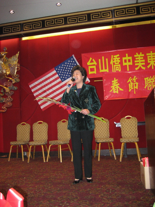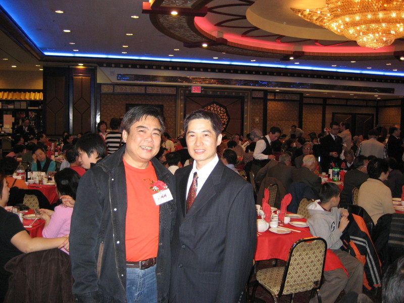 正中者是中华人民共和国驻纽约总领事馆周赛星副总领事,当她知道因車祸受重伤小童Jacky Kuang的姑姐(穿紅衣者)亦在宴上,即要求与小捷奇亲属见面,并代表中领馆向鄺氏家庭表示亲切的慰问,详细了觧小捷奇各方面的近况,解释有关领事条约,希望能给予小捷奇幫助。会见约廿分钟,周副总领事一再对鄺氏家庭表示亲切的问候,并愿望小Jacky早日康復。可见,海外侨胞的父母官,是无微不至、无时不刻在关怀侨民的。 |
